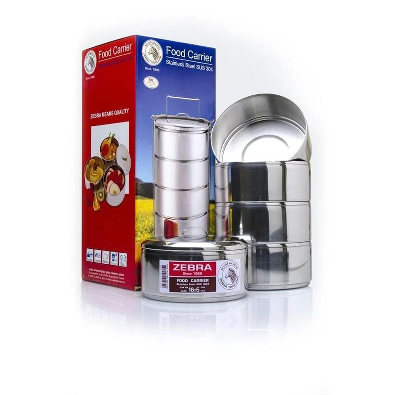 Cinq contenants en acier inoxydable qui s’emboîtent facilement et se verrouillent avec un système de clic. Pratique pour transporter ou conserver votre nourriture !